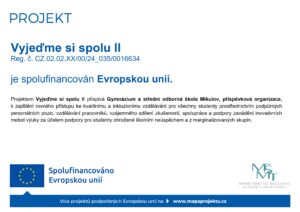 Žáci nyní ve svých třídách vymýšlejí, co by jim každodenní školní život zpříjemnilo, a své nápady zpracovávají do podoby projektu včetně rozpočtu. Po Vánocích nás čeká „kampaň“, ve které žáci budou své projekty zviditelňovat a usilovat o přízeň svých spolužáků. O tom, který z projektů bude na jaře realizován, rozhodne jistě napínavé celoškolní hlasování. Celkem bude na studentské projekty věnována částka 50 000 Kč – kromě pořádajícího Jihomoravského kraje se projekt finančně rozhodlo podpořit i SRPDŠ a město Mikulov, za což jim velmi děkujeme. Více zde.
