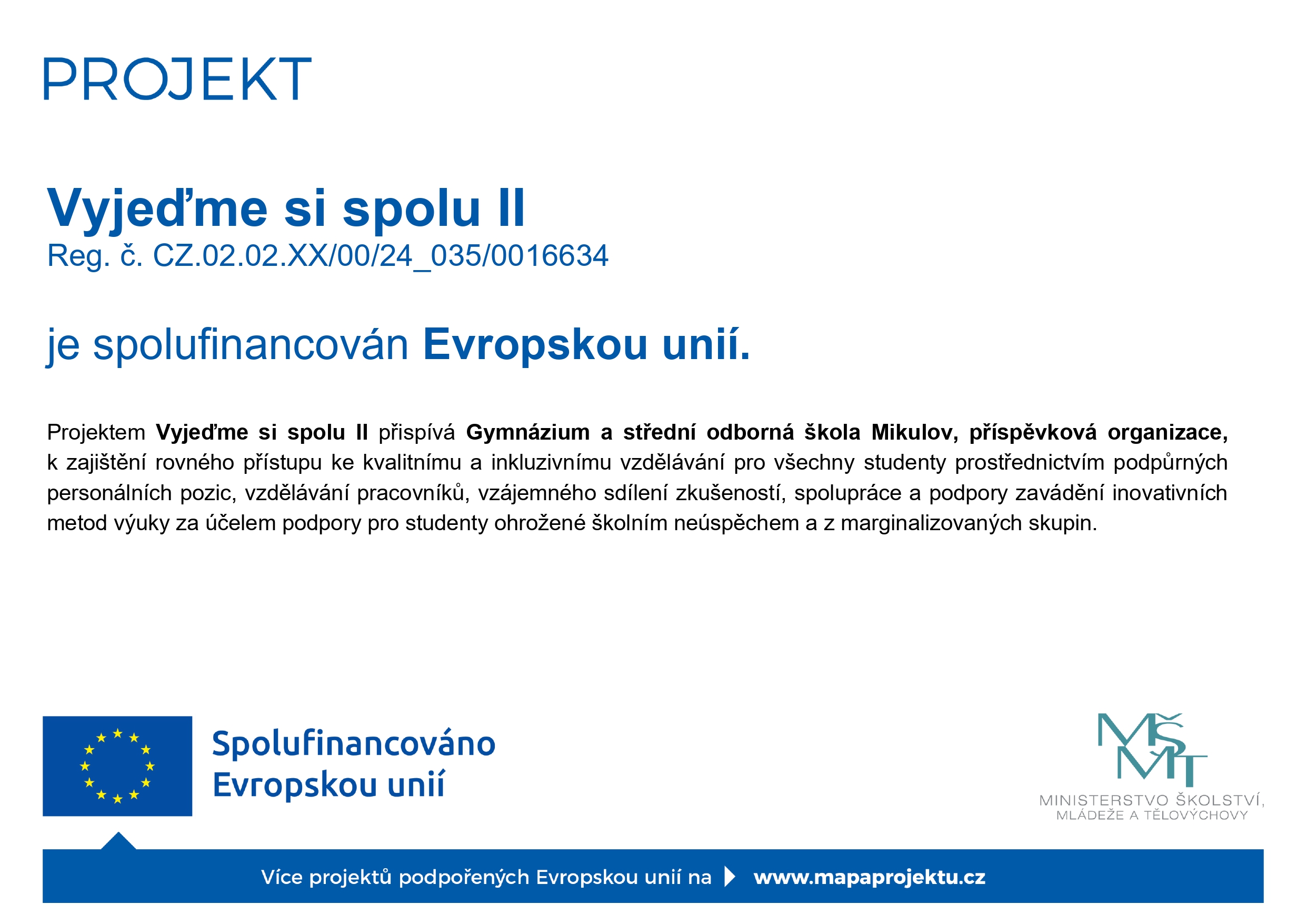 - Projekt „Vyjeďme si spolu“ Reg. č. CZ.02.02.XX/00/22_003/0001243.